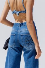 גינס בגזרה גבוה ובשפשוף סטון ווש מיוחד בשילוב בד לבן ופפיון. גזרה מנצחת סופר מחמיאה בעיצוב מיוחד.