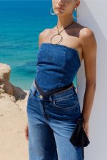 טופ בנדנה גינס בשפשוף סטון ווש מיוחד עם קשירות מחוך בגב.